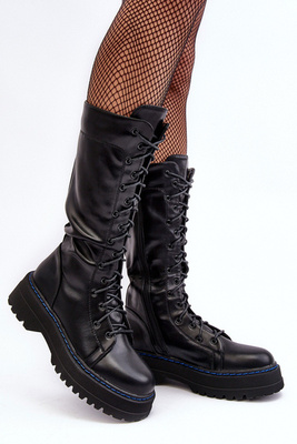 Boty Na Plochém Podpatku A Platformě Sztyblety Černé Linestta