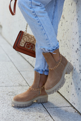 Prolamované Semišové Boty Se Zářezem Hnědý Carine