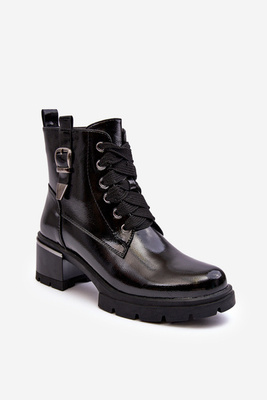 +1Lakové Dámské Botky Workery Šněrované Černé SBarski MR870-72