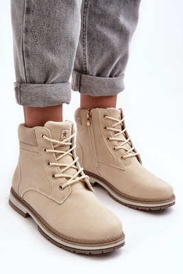 +1Dámské Workery Botky Šněrovací Na Plochém Podpatku Bežové Brenhile