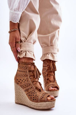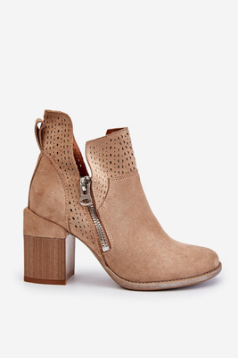+3Módní semišové prolamované boty na vysokém podpatku Béžová Genevi
