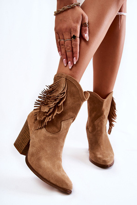 +1Dámské semišové kozačky na vysokém podpatku Nicole 2757 Béžove