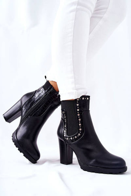 Kožené Boty S Ozdobným Zipem Černe Lomissa