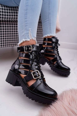 Dámské Kotníkové Boty Military Lakované Černé Bemmer