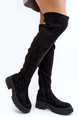 +1Ocieplené Semišové Kozačky Na Plochém Podpatku SBarski HY07-31 Černé