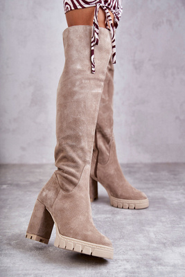 Kožené Boty Přes koleno Na Plochém Podpatku GOE KK2N4022 Bílé