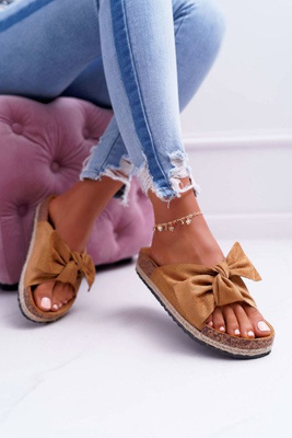 Dámské korkové nazouváky s mašlí a zirkony Leopard Astria