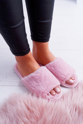 Růžové dámské domácí papuče s kožešinou Dezi
