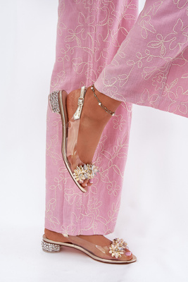 Průhledné Sandály Na Nízkém Podpatku Se Zdobením D&A MR51-709 Zlaté