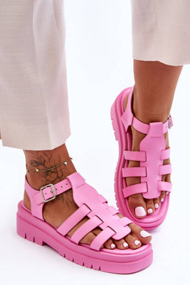 Semišové ploché sandály s ozdobou Nicole 2744/067 Fuchsia