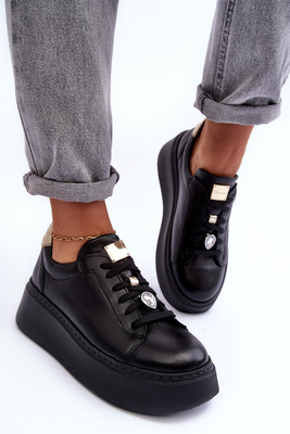 Dámské kožené sportovní boty s řetízkem černé Tymagio
