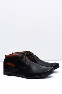 Czarne Męskie Skórzane Sznurowane Półbuty Gertrudo