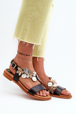 Dámské rovné sandály s ozdobou Černé Kavinia