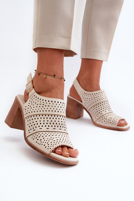 Lakové sandály na podpatku béžové Adrianu