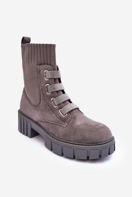 +3Ocieplané Zamszové Botky Trapery S Plochou Podrážkou Tmavě Zelené Zikey