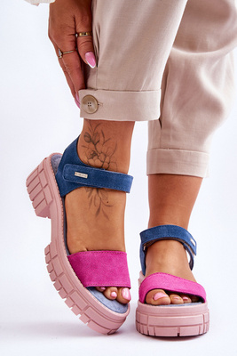 Dámské kožené sandály na platformě béžové Lucami