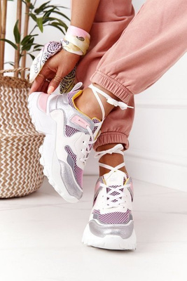 Dámská Sportovní Obuv Sneakers Na Platformě Bílé-Stříbrné Shine Bright