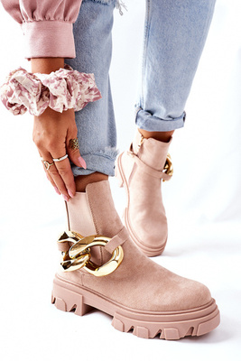 Semišové Teplé Workery S Ozdobnými Kameny Béžové Hadley