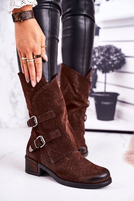 Dámské Kotníkové Sněžné boty Semišové Hnědé Button