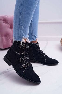 Dámské Kotníkové Boty Na Podpatku S Ozdobným Zipem Semišové Černé Imagine