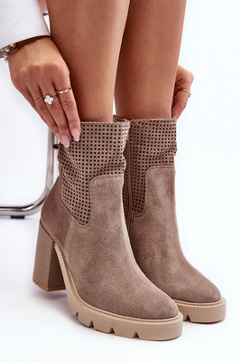 +2Dámské semišové dírkované boty na podpatku bežové Lewski 3386