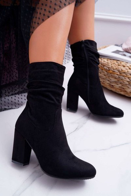 Dámské Kotníkové Boty Na Podpatku Semišové Černé Endless