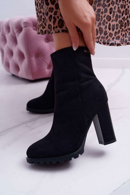 Dámské Kotníkové Boty Na Podpatku Semišové Teplé M319 Černé Midway