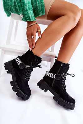 Kožené Zateplené Botky Workerky Dámské Big Star OO274A387 Černé