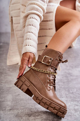 Prolamované Botičky Se Zipem S řetízkem Hnědý Chantelle