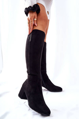 S. Barski Černé Semišové Kozačky na podpatku Celina