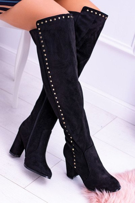 Černé suede boty nad kolenem Almo