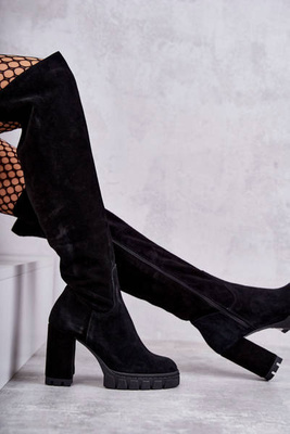Dámské Kozačky Na Podpatku Teplé Černé Finner