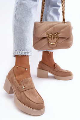 Semišové robustní lodičky na platformě Béžove Diame