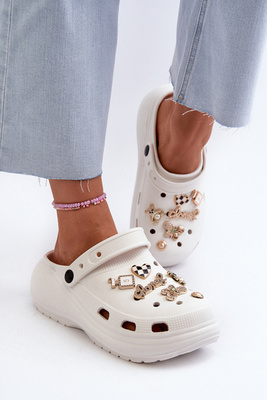 +1Elegantní lakované dámské pantofle na nízkém podpatku s zlatou ozdobou bílé Uzimila