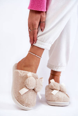 Chlupaté Pantofle S Bambulkami Béžové Pamppy