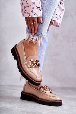 Kožené mokasíny Řetízek Svetle Béžová Amicable