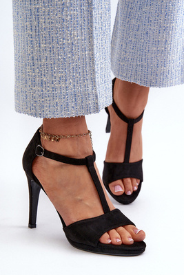 +1Dámské sandály na podpatku s ozdobným páskem eko kůže černé Triavera