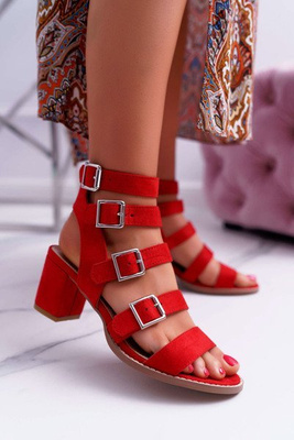 Dámské Sandály Na Podpatku Sergio Leone SK868 Semišové Červené Mersi