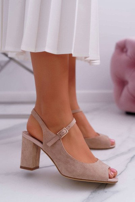 Dámské Sandály Na Podpatku Semišové Béžové ShakeUp