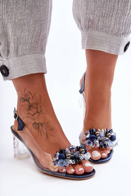 Lakované Sandály Na Podpatku S.Barski 80-3 Tmavě Modré