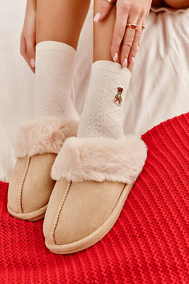 Dámské Papuče Pantofle s Kožíškem Bežová Pinky