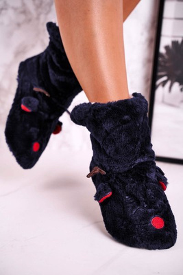 Vánoční Teplé Kožešinové Pantofle Tmavě Modré Jingle Bells