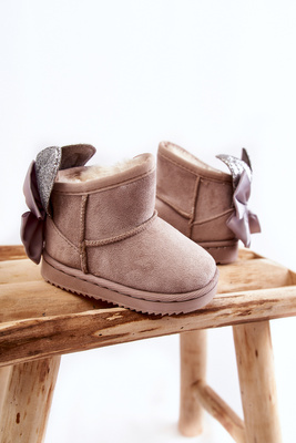 Dětské Teplé Sněhule Semišové s Mašlemi D.Khaki Funky