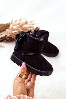 Dětské Teplé Sněhule Semišové S Mašlí Černé Lolila