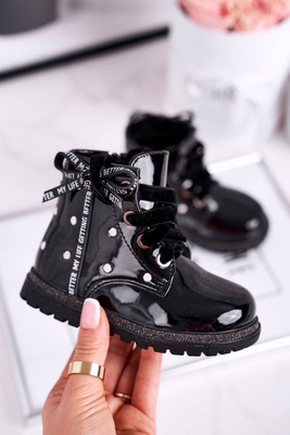 Dětské Boty zateplené Se Zipem Lakované Černé Say You