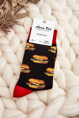 Dámské Černé Vzorované Ponožky S Nápisem A Medvídkem