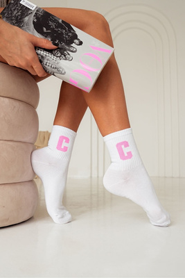 Bavlněné Dámské Ponožky S Písmenem C Bílé