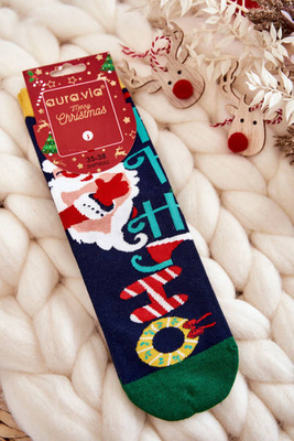 Pánské vánoční bavlněné ponožky se Santa Clauses Námořnická modrá a červená