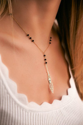 Dámský Zlatý Náhrdelník Růženec černé Kuličky Beatrix
