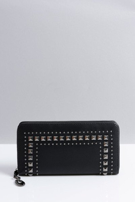 Duży Damski Czarny Portfel z Ćwiekami